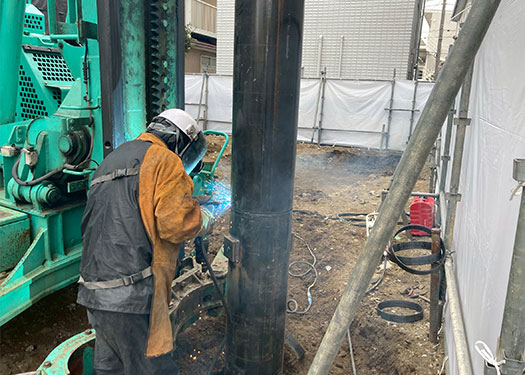 建物の安全性を支える「基礎杭」の施工を中心に、多様な現場で溶接工事を行っています。