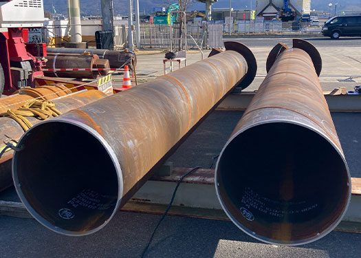 大型の鋼管杭を地中へ打ち込む際に必要となる、高強度かつ確実な溶接工事に対応しています。