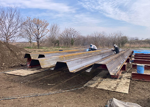 川沿いや土木現場で使用される、波形の鋼材「鋼矢板」の溶接工事にも対応しています。